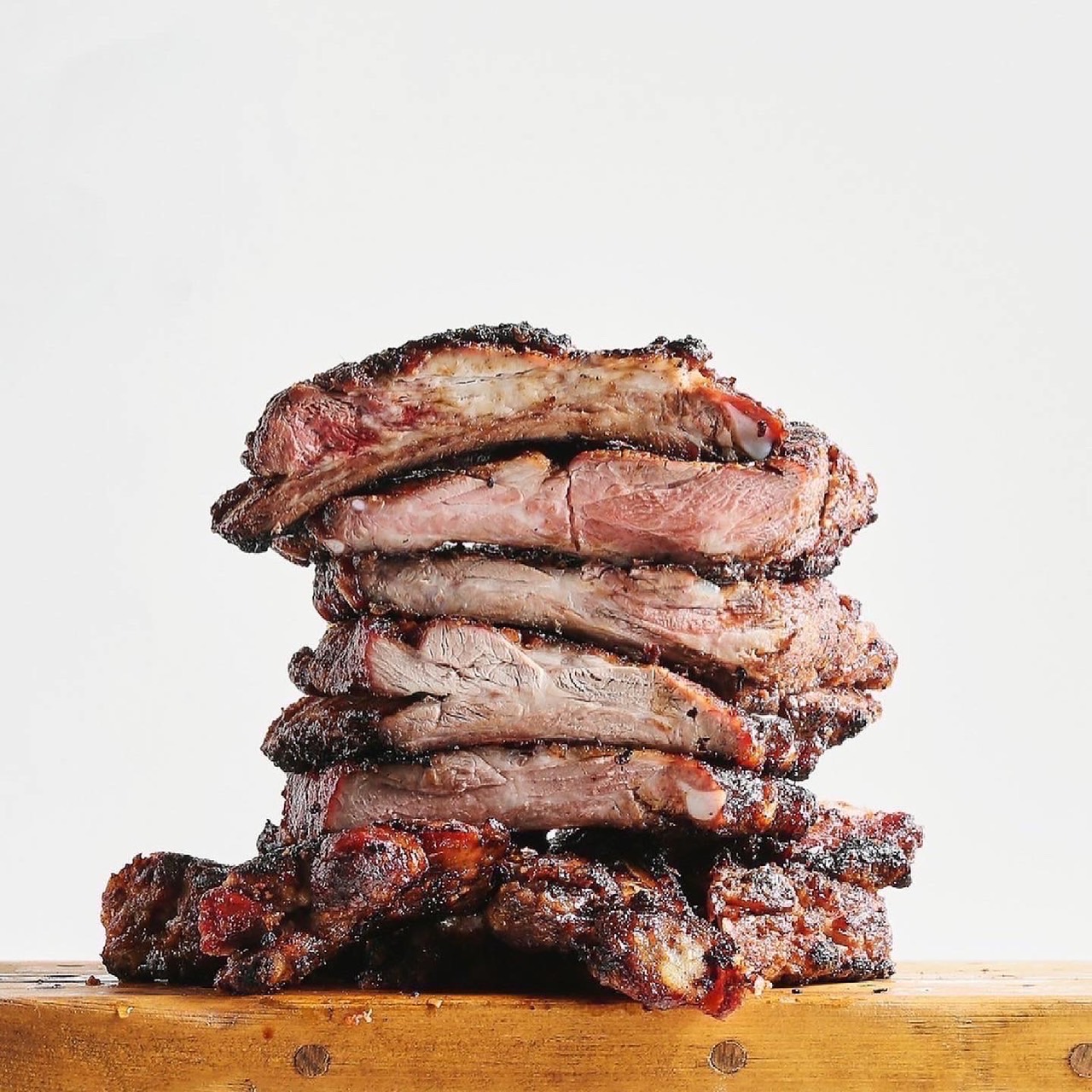 BBQソースを絡めながら炭火で焼き上げるスペアリブ