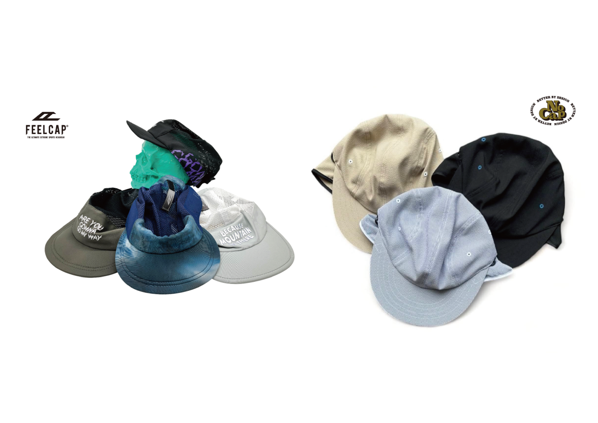 デザインから生産までを日本国内の自社工場で生産されており、サイクリング・トレイルランニング・ランニングなどスポーツに特化したFEELCAPと60年代から90年代後期の古着やサイクリングカルチャーとのコーディネートを意識したNo Capを出展いたします。